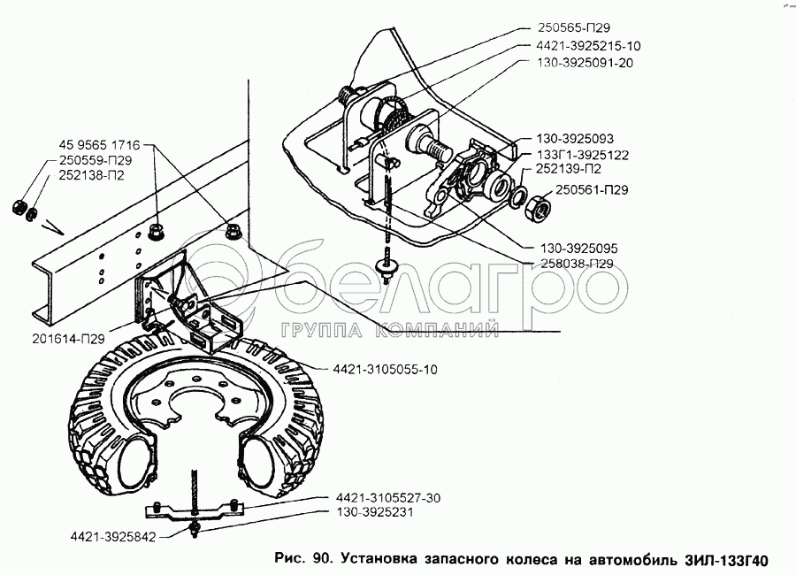 Каталог запасных частей к технике: ЗИЛ-433100. Установка запасного колеса на автомобиль ЗИЛ-133Г40