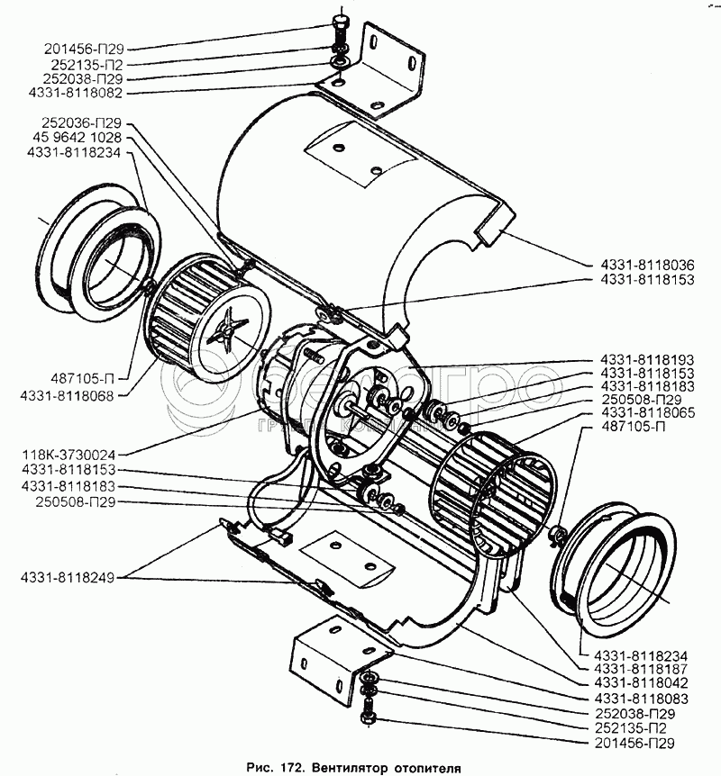 Каталог запасных частей к технике: ЗИЛ-433100. Вентилятор отопителя