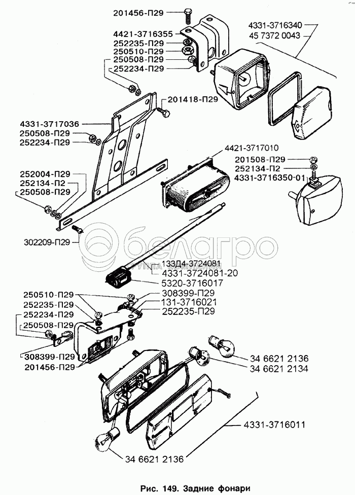 Каталог запасных частей к технике: ЗИЛ-433100. Задние фонари