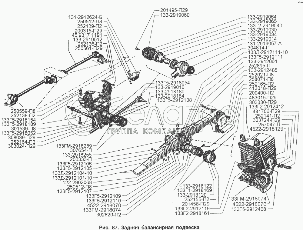 Каталог запасных частей к технике: ЗИЛ-433100. Задняя балансирная подвеска