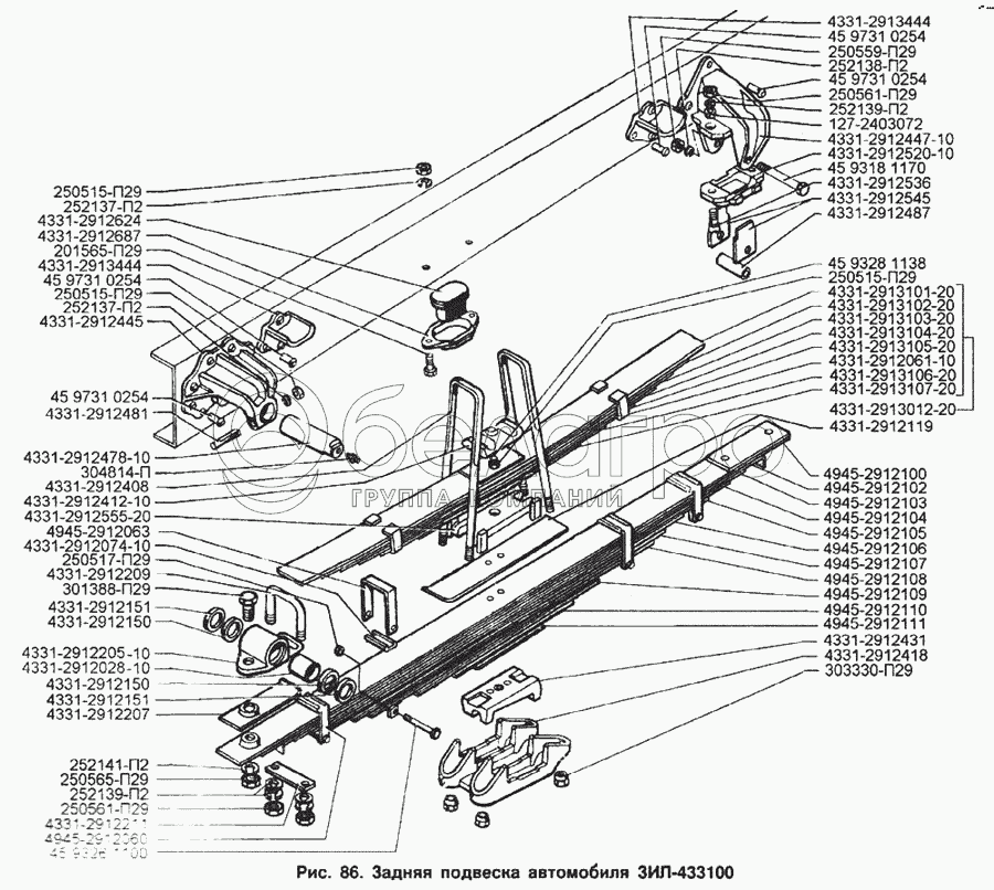 Каталог запасных частей к технике: ЗИЛ-433100. Задняя подвеска автомобиля ЗИЛ-433100