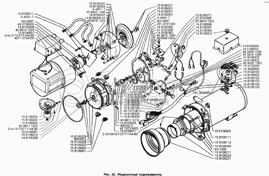 Каталог запасных частей к технике: ЗИЛ-433100. Жидкостный подогреватель