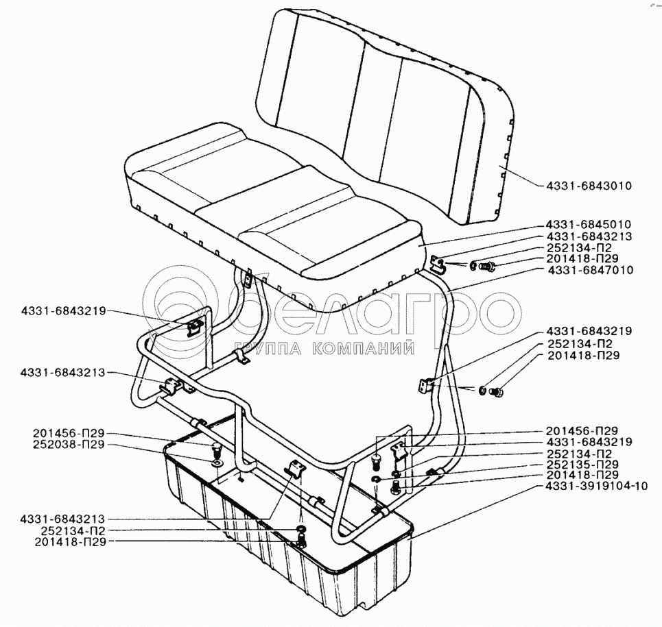 Каталог запасных частей к технике: ЗИЛ-433110. Двухместное сиденье