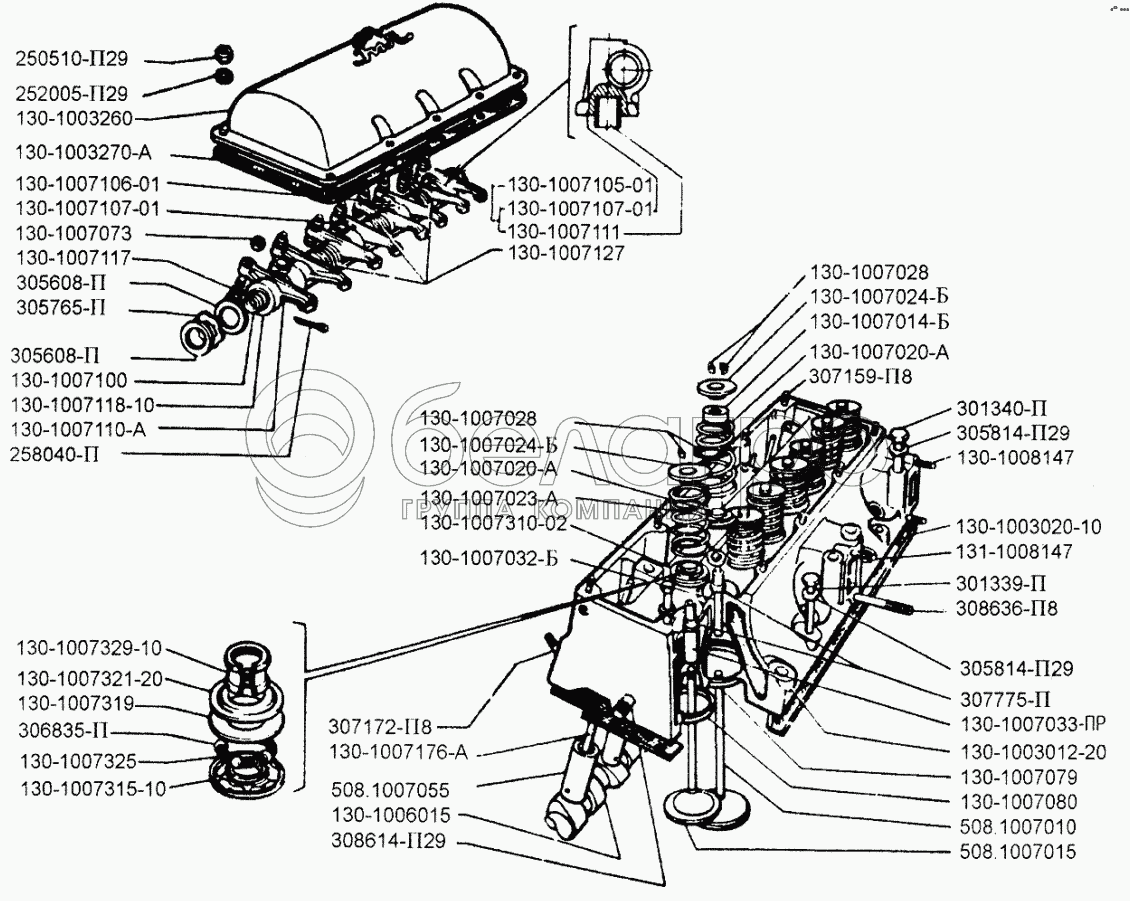 Каталог запасных частей к технике: ЗИЛ-433110. Головка блока цилиндров, клапаны и толкатели