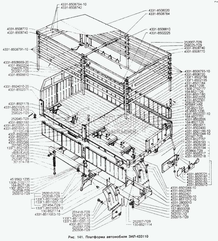 Каталог запасных частей к технике: ЗИЛ-433110. Платформа автомобиля ЗИЛ-433110