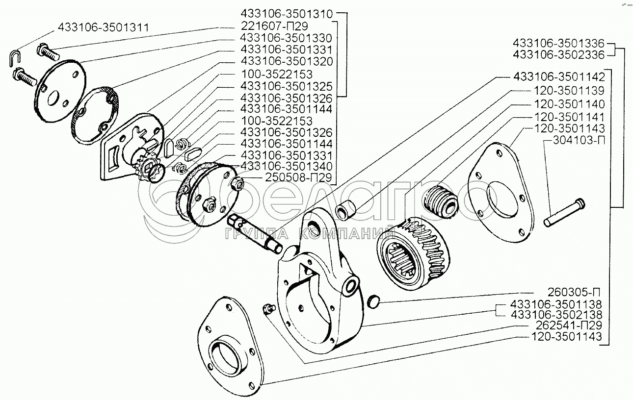 Каталог запасных частей к технике: ЗИЛ-433110. Рычаг регулировочный и муфта свободного хода