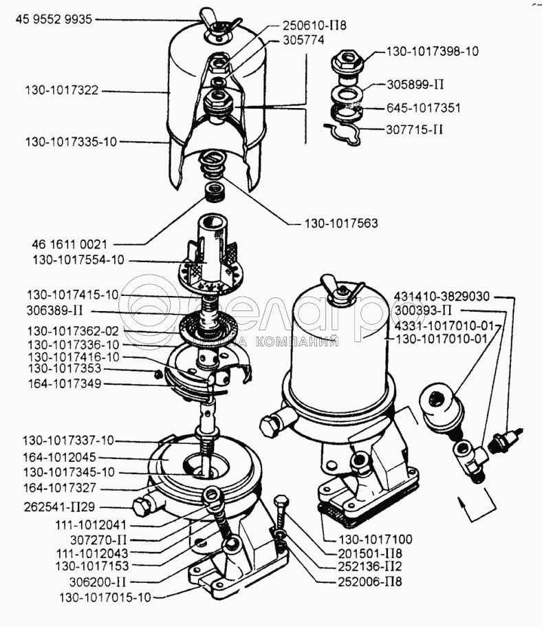 Каталог запасных частей к технике: ЗИЛ-433110. Центробежный фильтр очистки масла (полнопоточная центрифуга)
