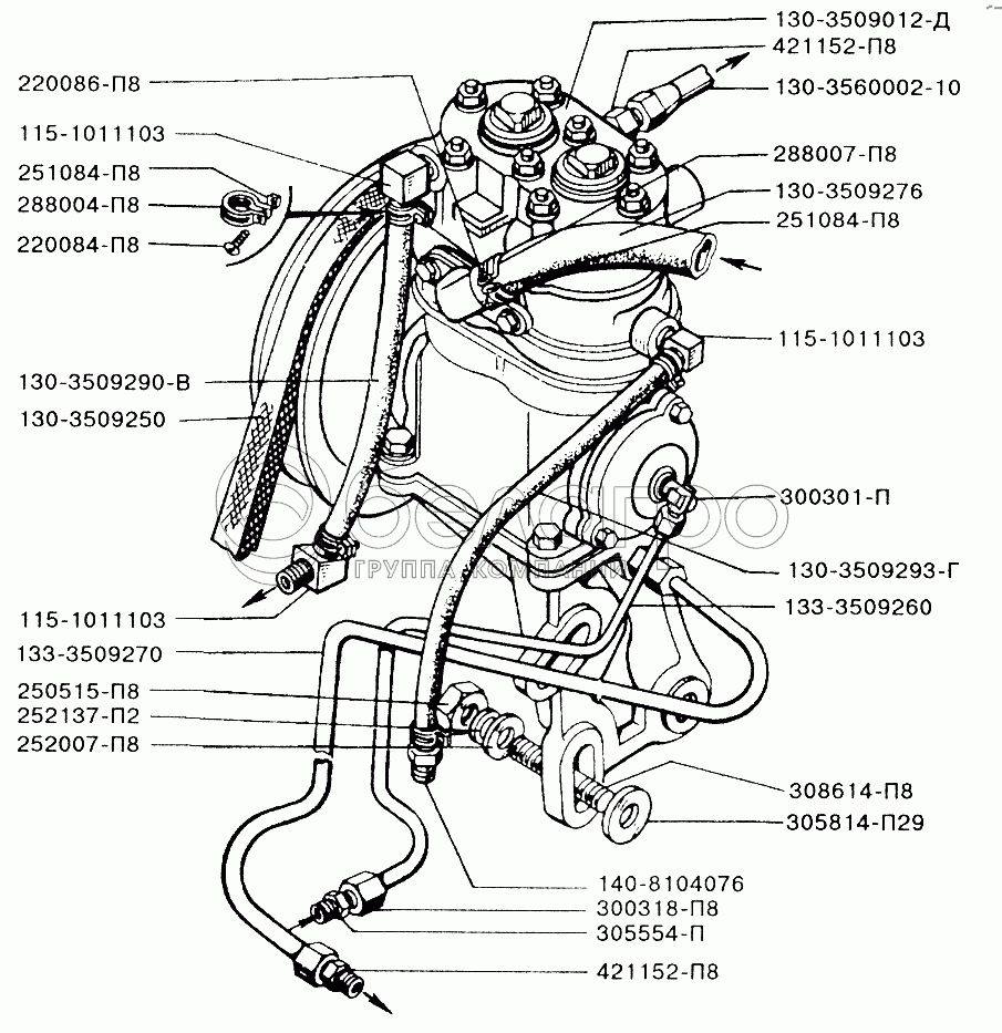 Каталог запасных частей к технике: ЗИЛ-433110. Установка компрессора