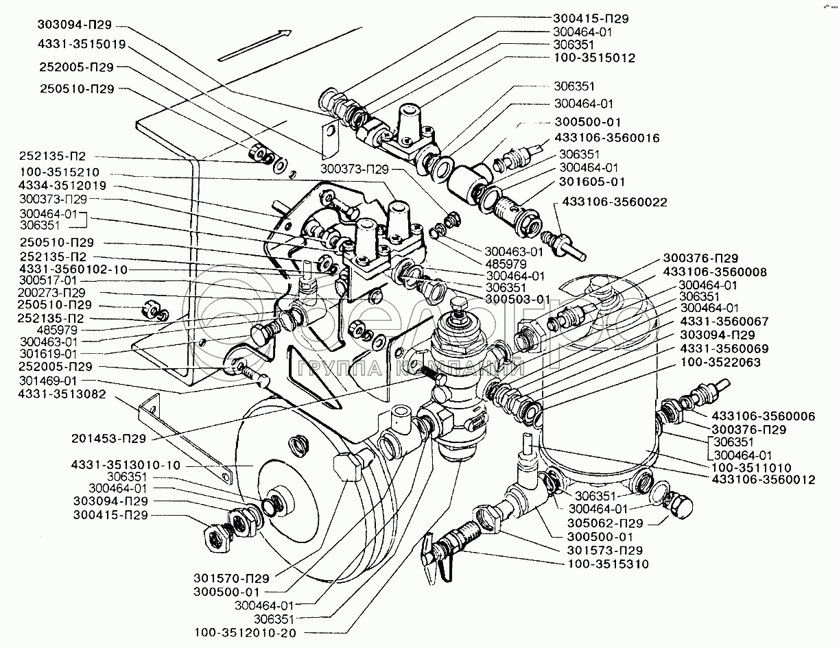 Каталог запасных частей к технике: ЗИЛ-433110. Установка контрольно-предохранительной аппаратуры с влагомаслоотделителем