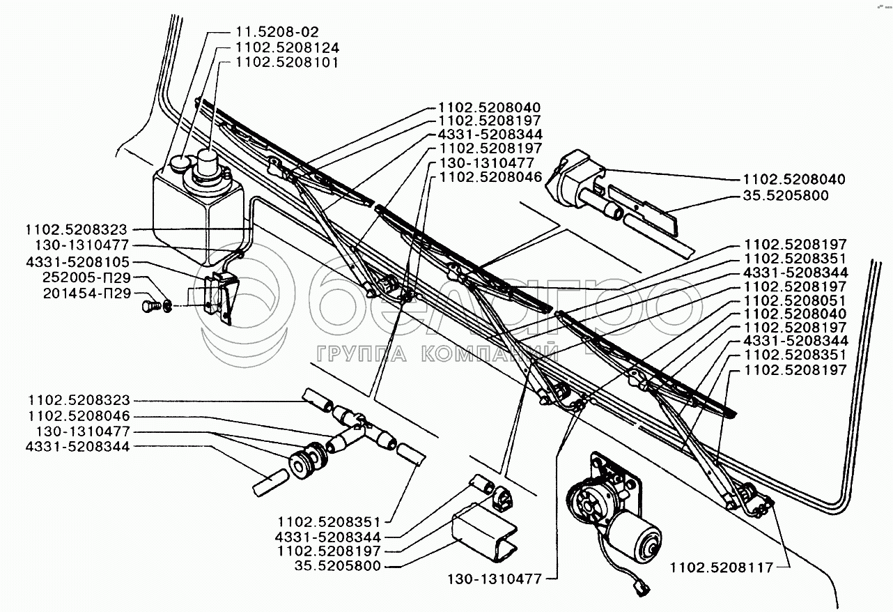 Каталог запасных частей к технике: ЗИЛ-433110. Установка обмыва ветрового стекла