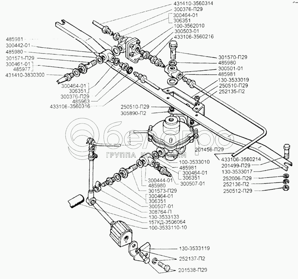 Каталог запасных частей к технике: ЗИЛ-433110. Установка регулятора тормозных сил