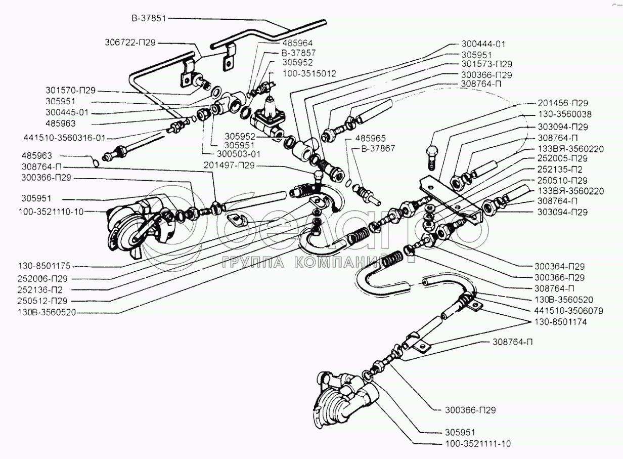 Каталог запасных частей к технике: ЗИЛ-433110. Установка соединительных головок автомобиля ЗИЛ-442160