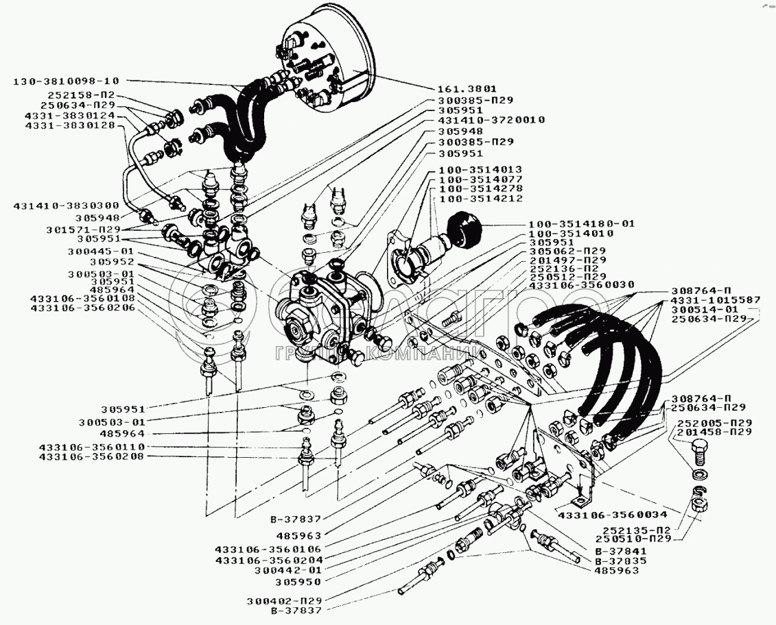 Каталог запасных частей к технике: ЗИЛ-433110. Установка тормозного крана и трубок