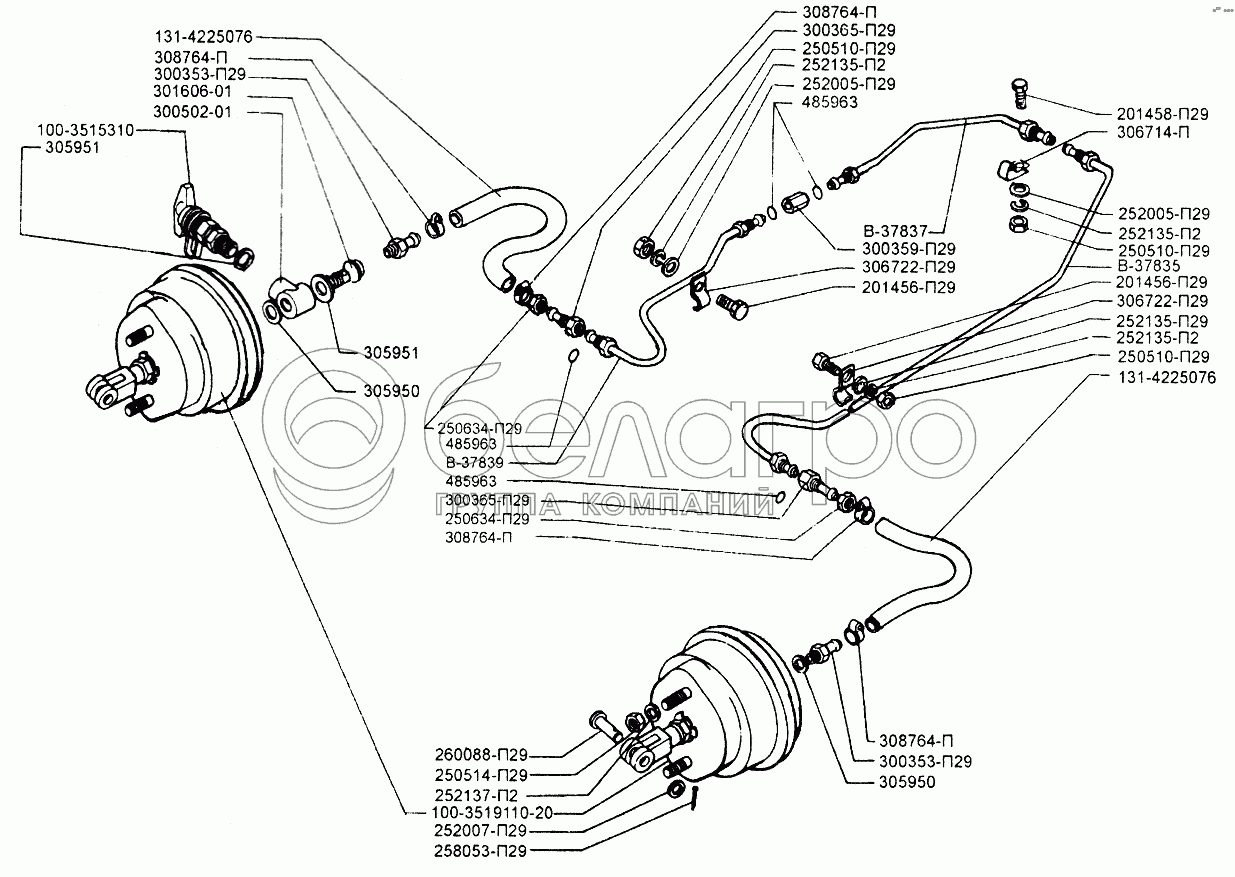 Каталог запасных частей к технике: ЗИЛ-433110. Установка трубопроводов передних тормозных камер