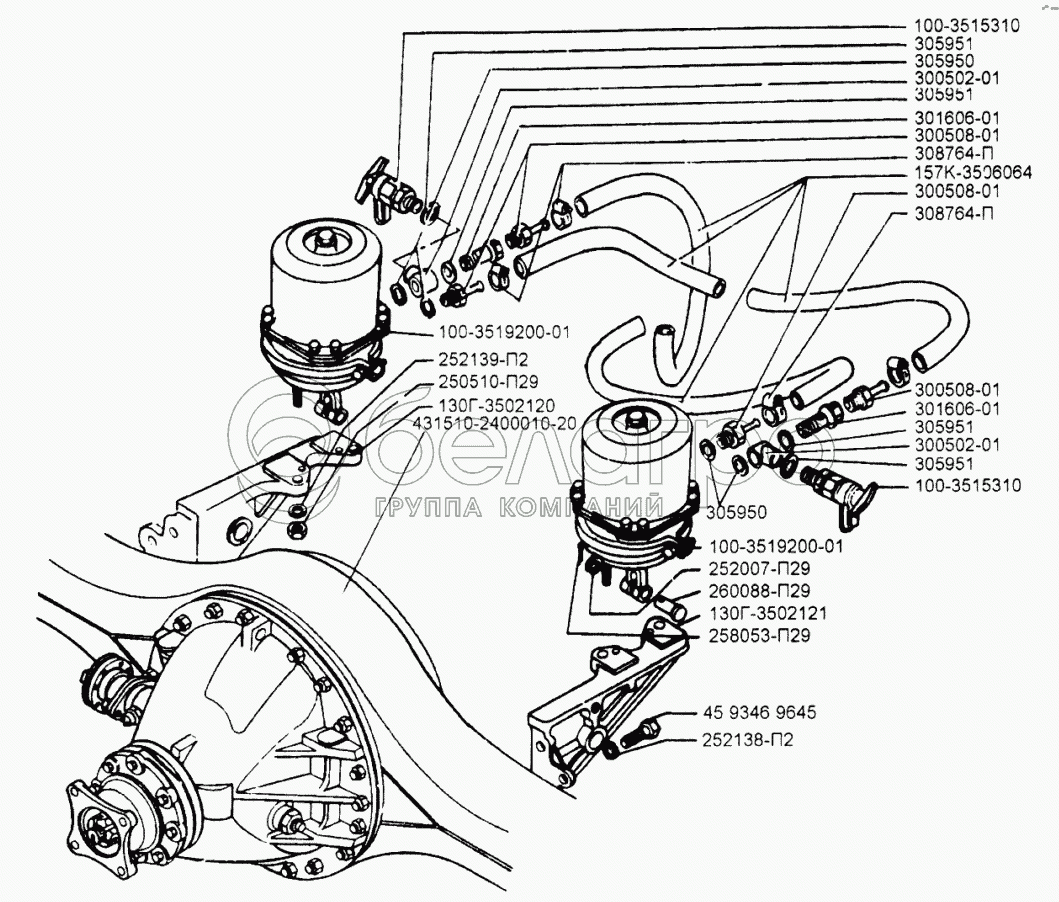 Каталог запасных частей к технике: ЗИЛ-433110. Установка задних тормозных камер