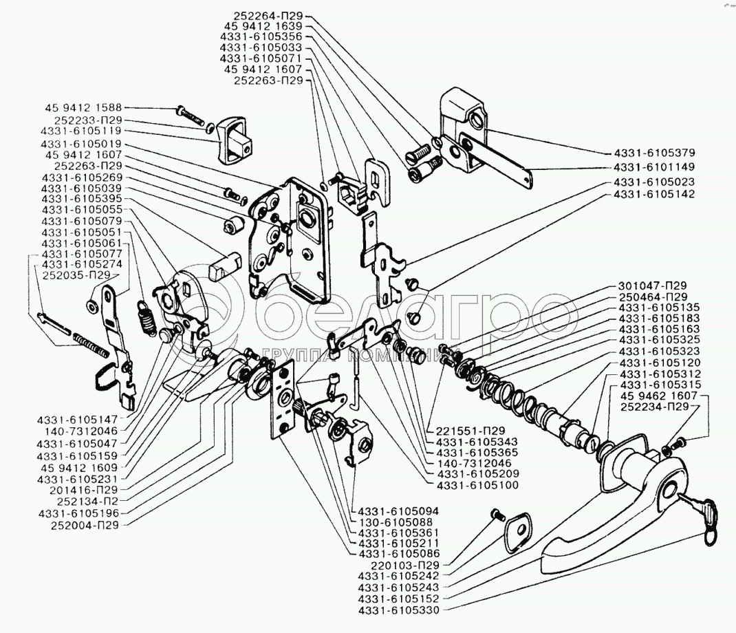 Каталог запасных частей к технике: ЗИЛ-433110. Замок и ручка двери