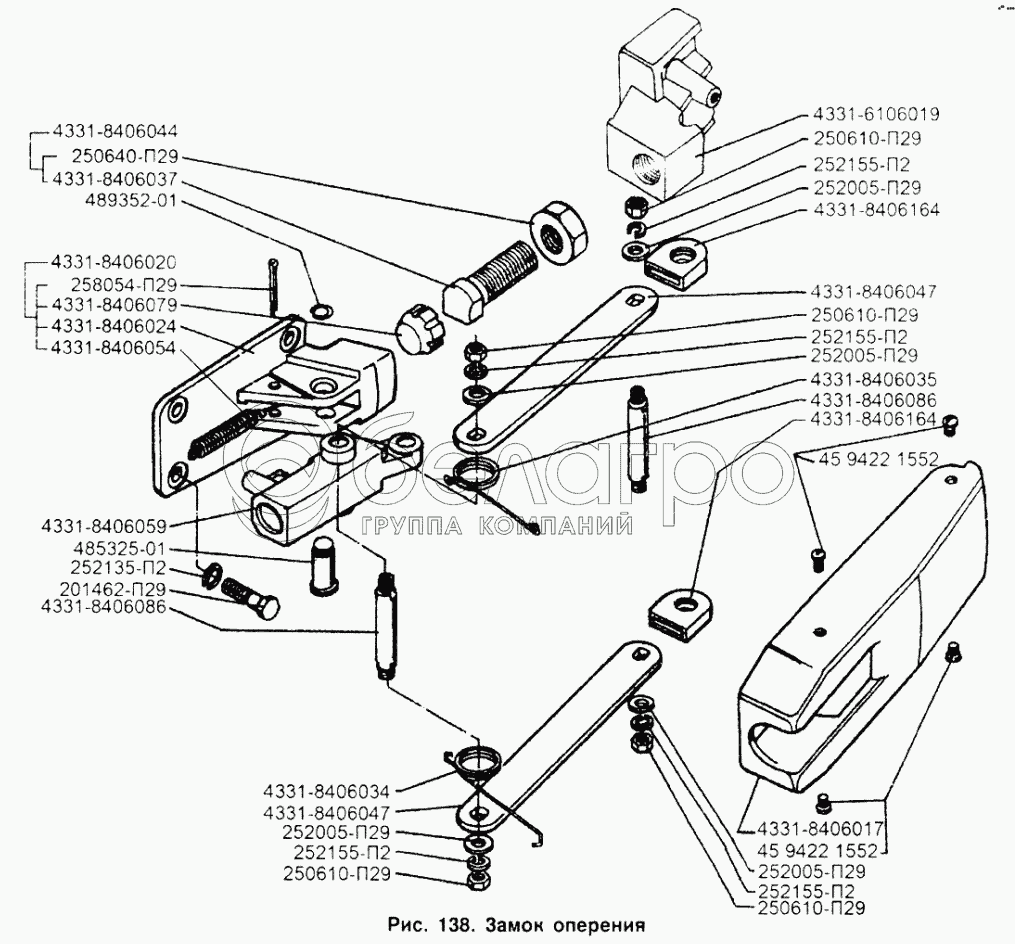 Каталог запасных частей к технике: ЗИЛ-433110. Замок оперения