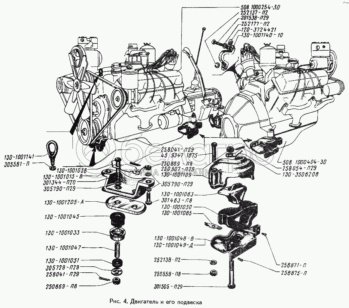 Каталог запасных частей к технике: ЗИЛ-433360. Двигатель и его подвеска
