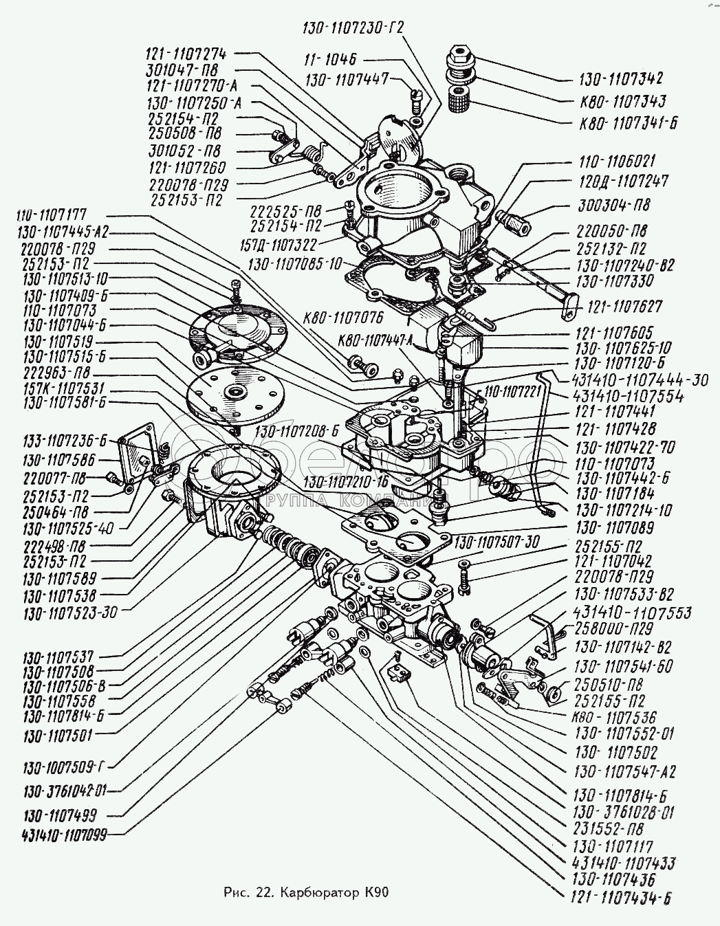 Каталог запасных частей к технике: ЗИЛ-433360. Карбюратор К90