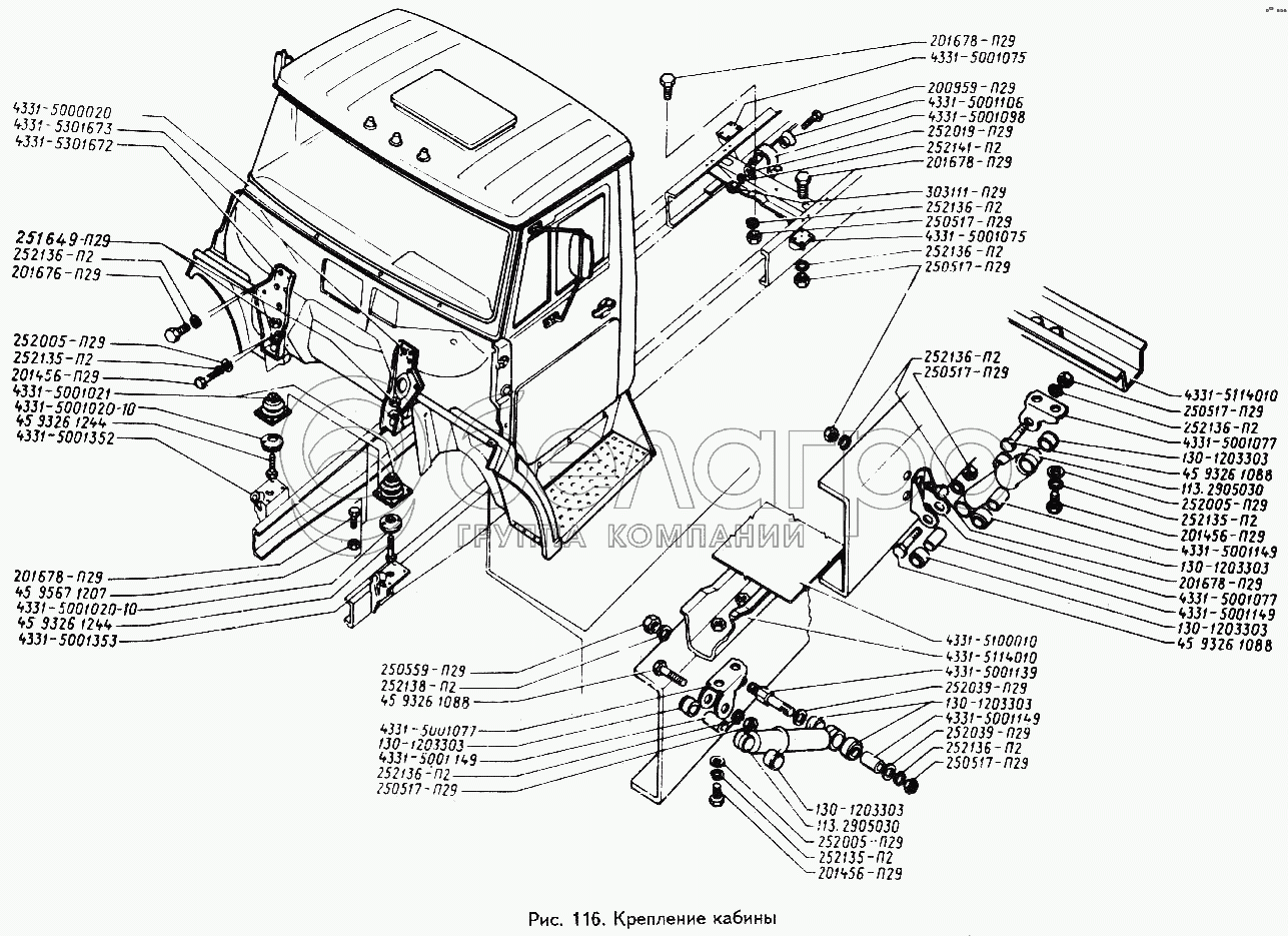 Каталог запасных частей к технике: ЗИЛ-433360. Крепление кабины