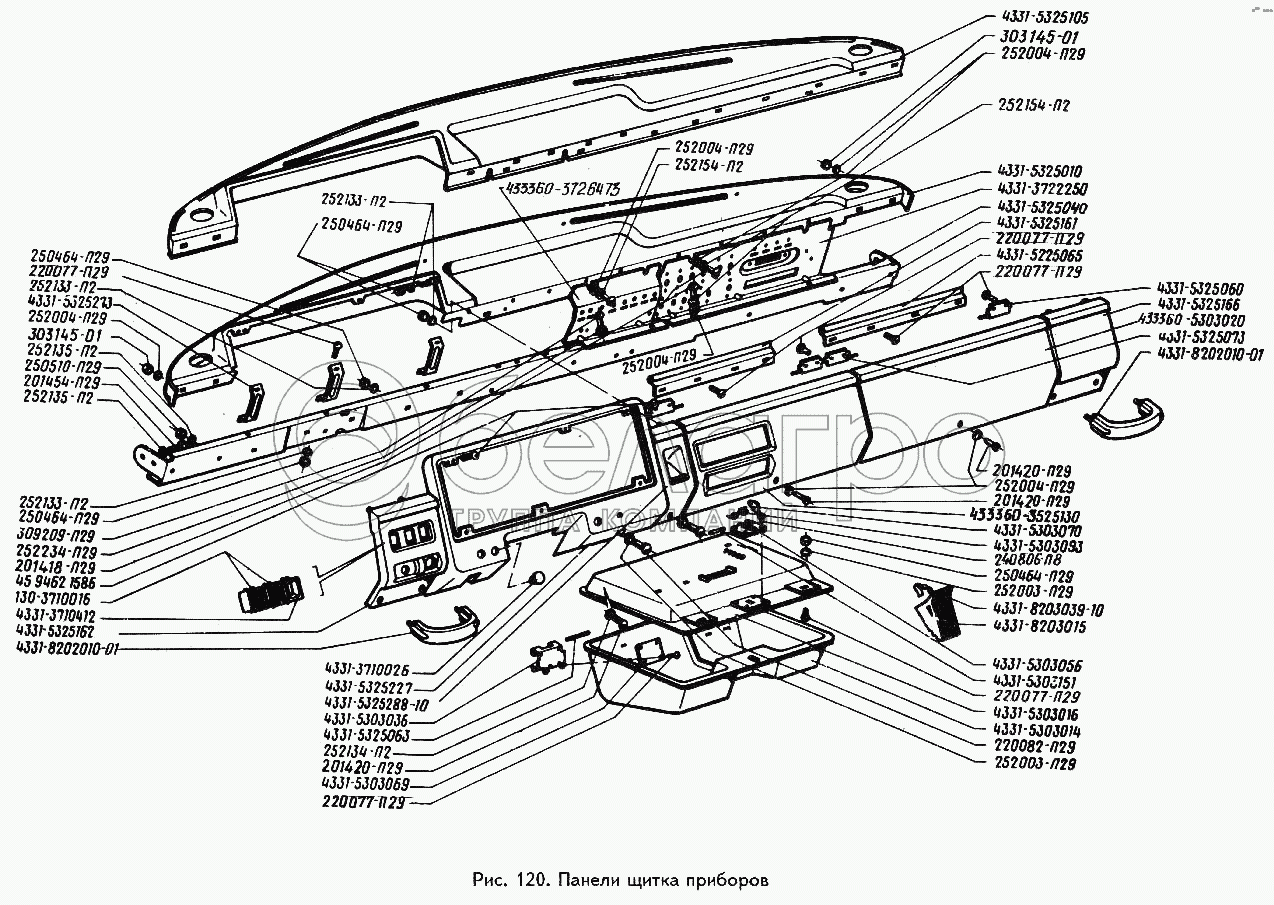 Каталог запасных частей к технике: ЗИЛ-433360. Панели щитка приборов
