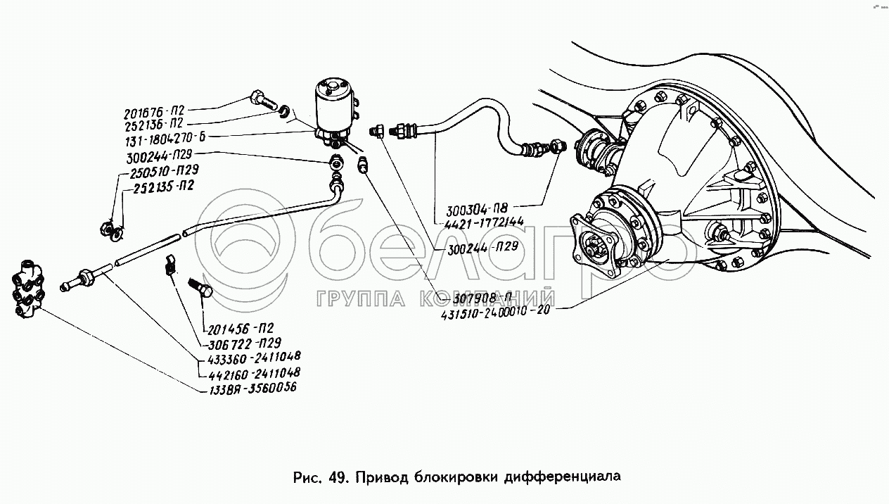 Каталог запасных частей к технике: ЗИЛ-433360. Привод блокировки дифференциала