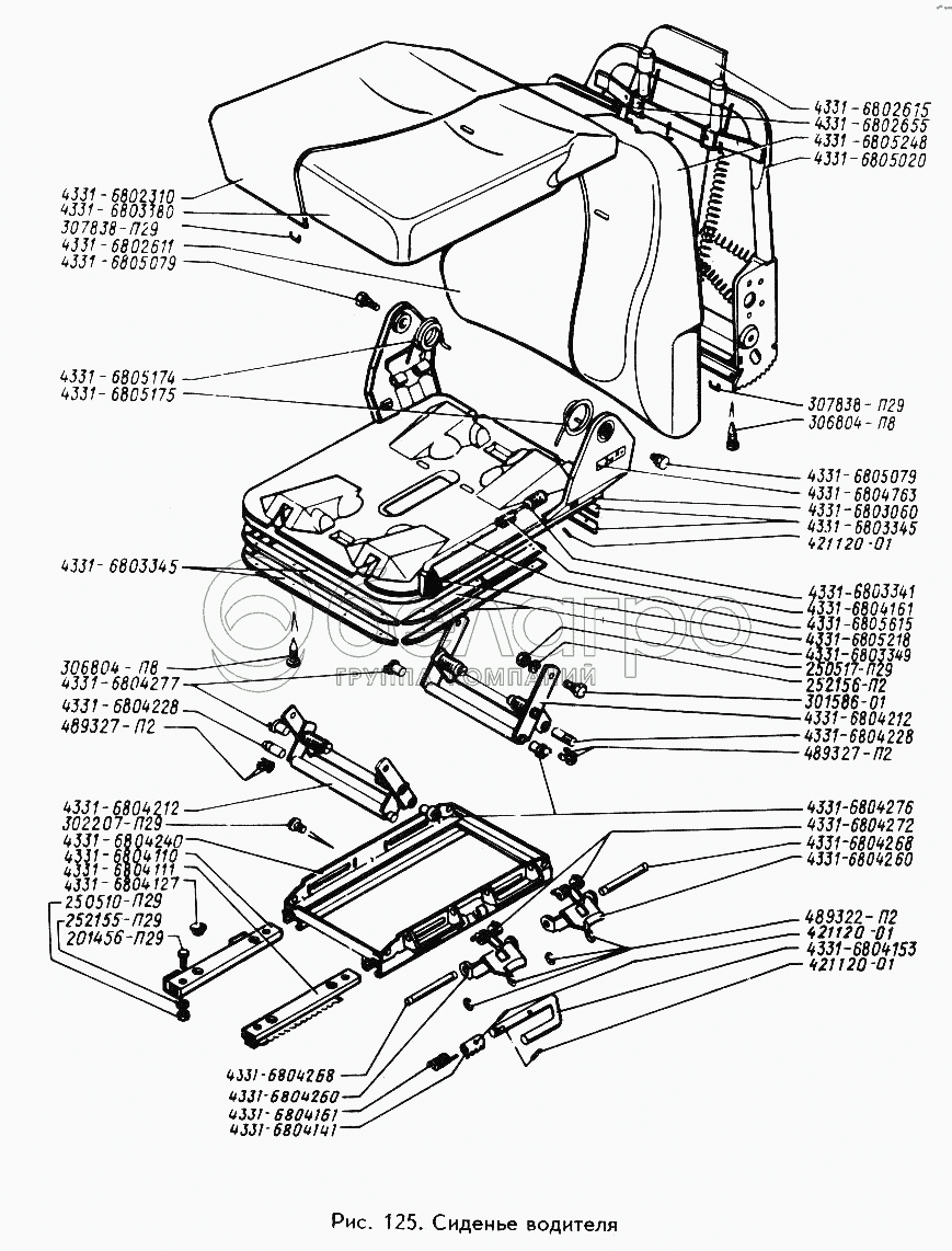 Каталог запасных частей к технике: ЗИЛ-433360. Сиденье водителя
