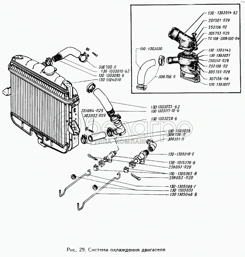 Каталог запасных частей к технике: ЗИЛ-433360. Система охлаждения двигателя