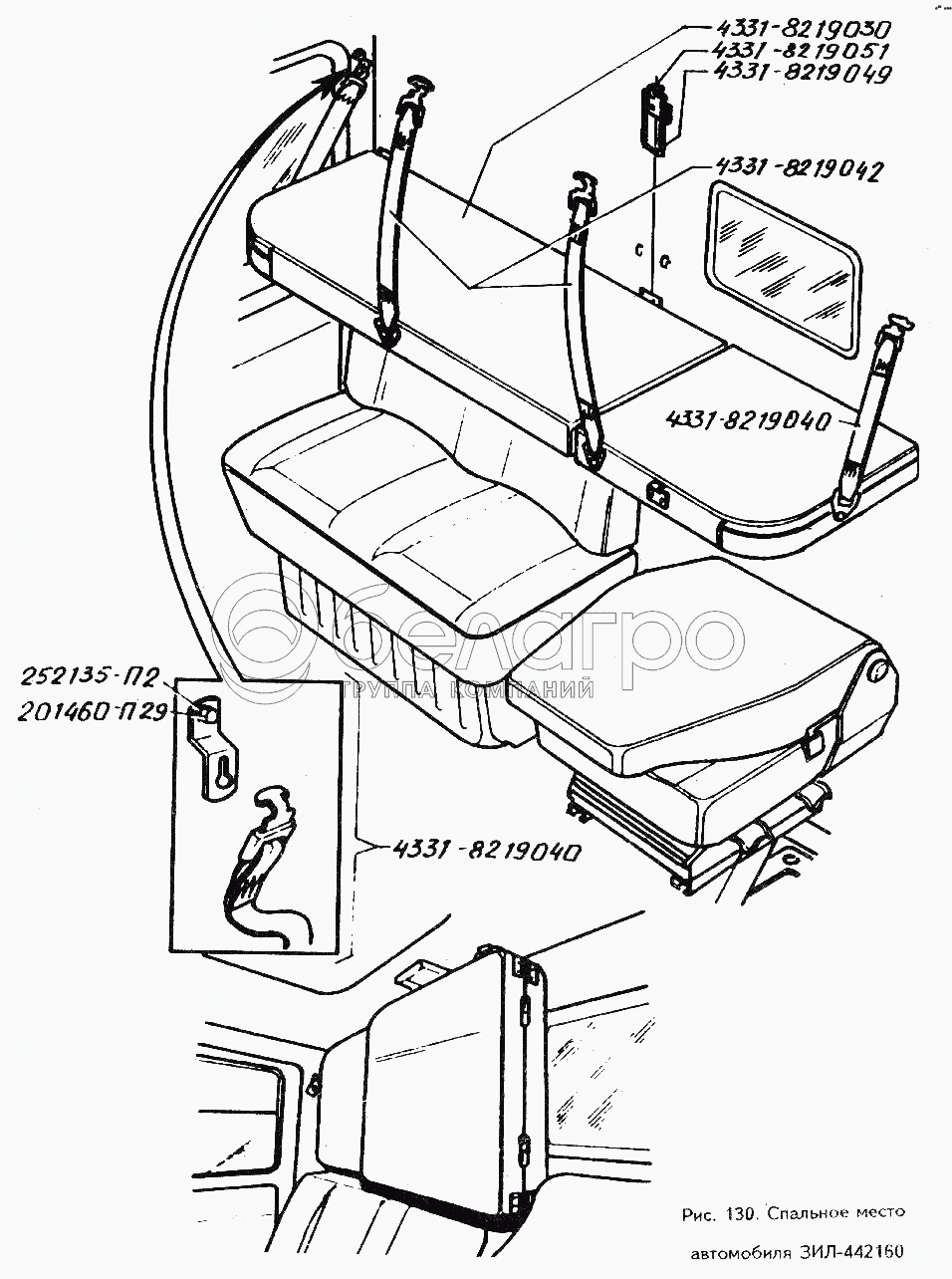 Каталог запасных частей к технике: ЗИЛ-433360. Спальное место для автомобиля ЗИЛ-442160