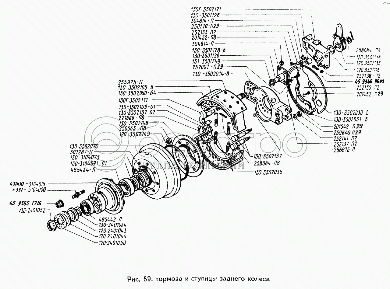 Каталог запасных частей к технике: ЗИЛ-433360. Тормоза и ступицы заднего колеса