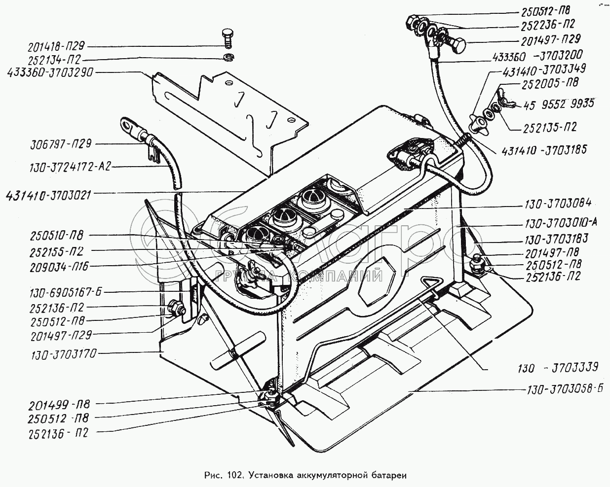 Каталог запасных частей к технике: ЗИЛ-433360. Установка аккумуляторной батареи