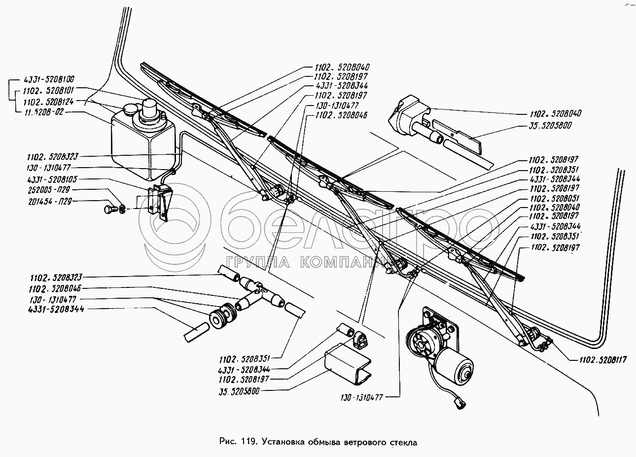 Каталог запасных частей к технике: ЗИЛ-433360. Установка обмыва ветрового стела