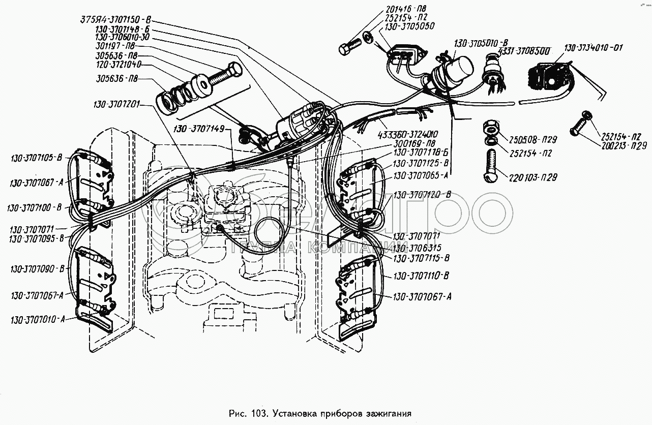 Каталог запасных частей к технике: ЗИЛ-433360. Установка приборов зажигания