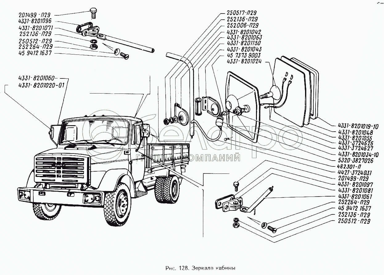 Каталог запасных частей к технике: ЗИЛ-433360. Зеркала кабины