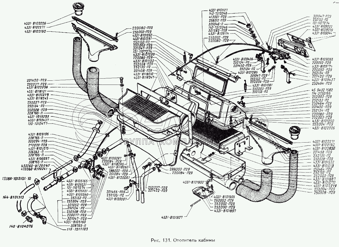 Каталог запасных частей к технике: ЗИЛ-442160. Отопление кабины