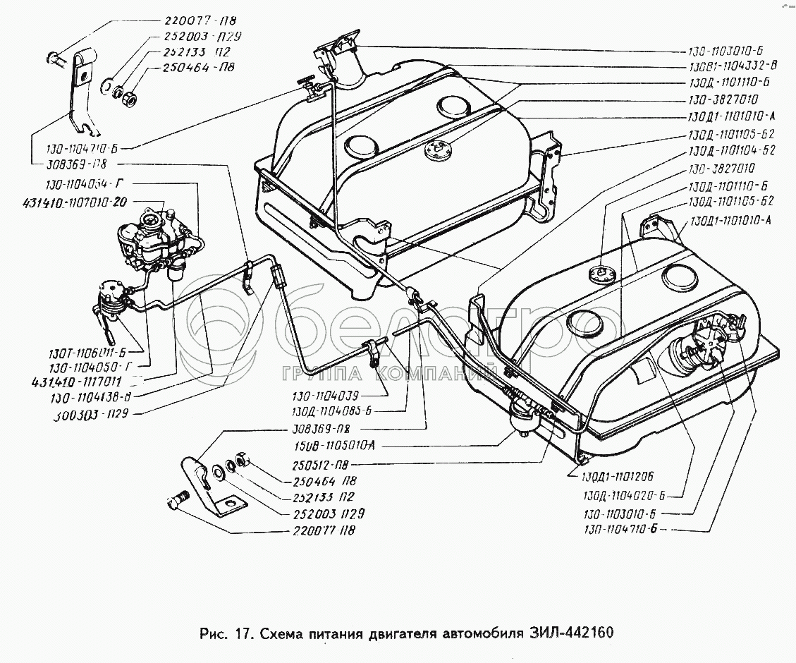 Каталог запасных частей к технике: ЗИЛ-442160. Схема питания двигателя автомобиля ЗИЛ-442160