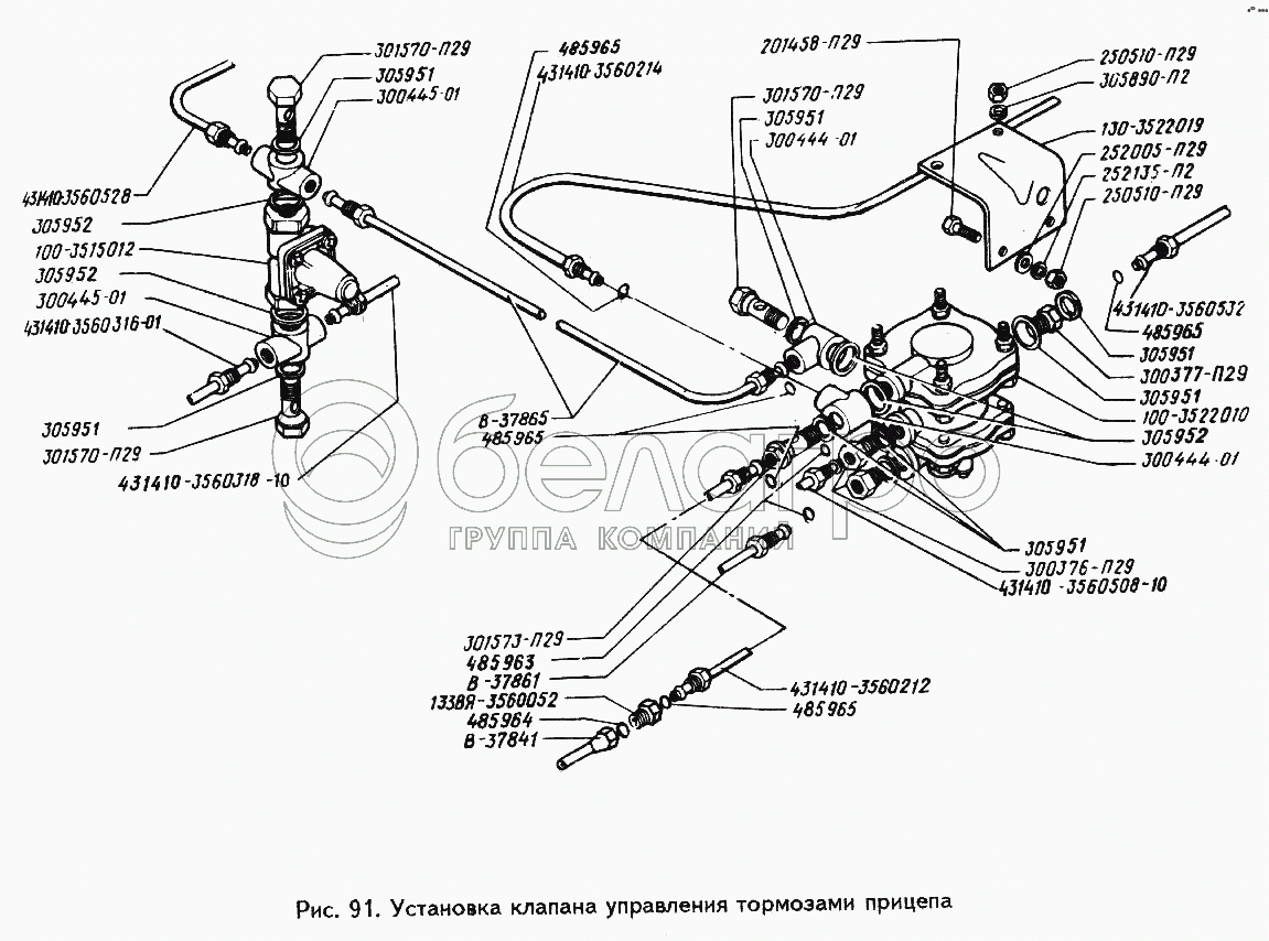 Каталог запасных частей к технике: ЗИЛ-442160. Установка клапана управления тормозами прицепа