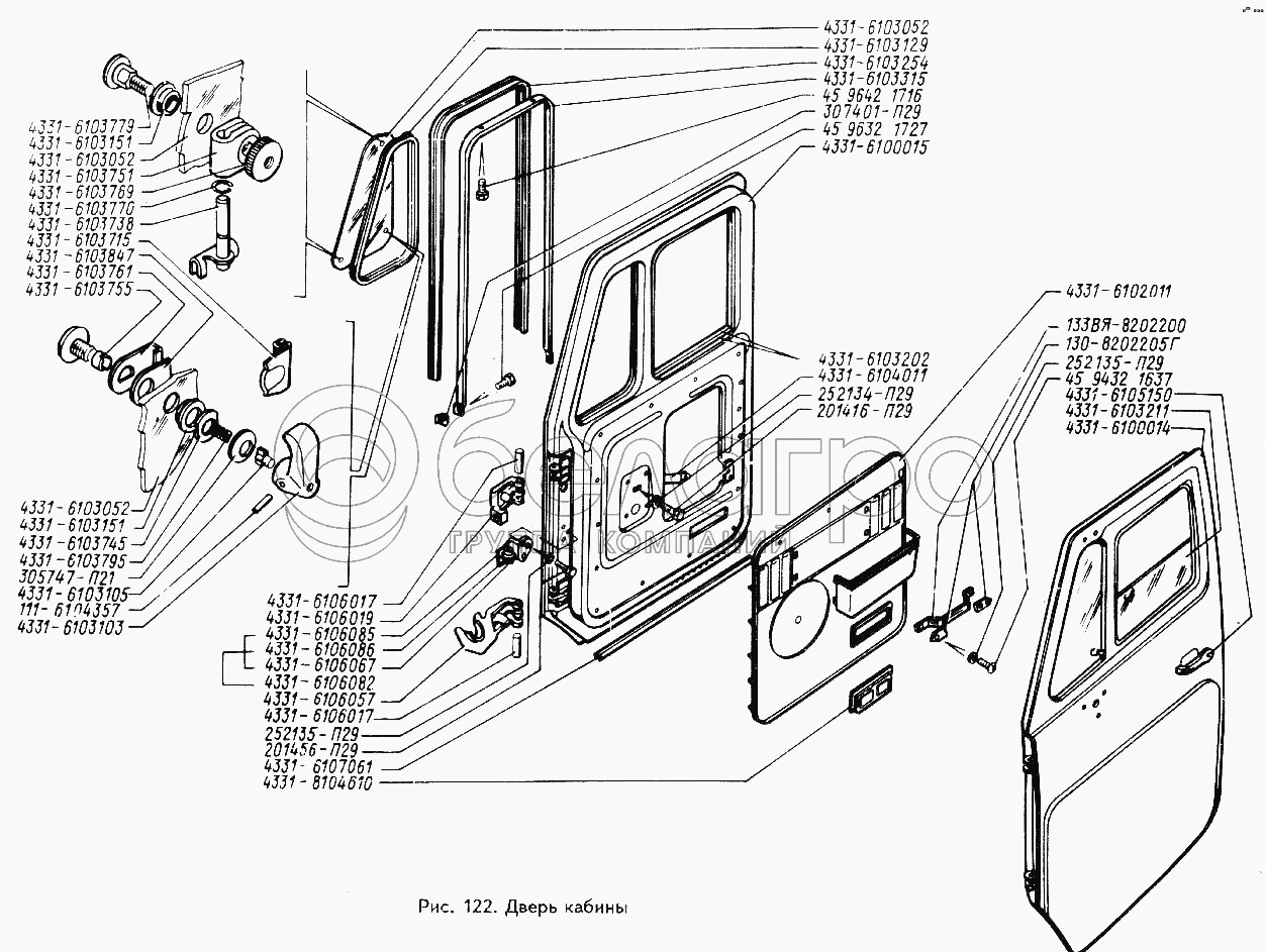 Каталог запасных частей к технике: ЗИЛ-494560. Дверь кабины