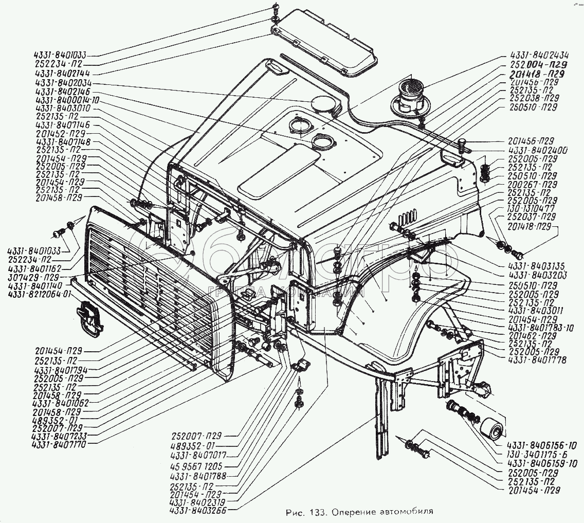 Каталог запасных частей к технике: ЗИЛ-494560. Оперение автомобиля