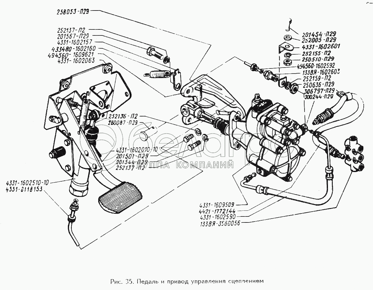 Каталог запасных частей к технике: ЗИЛ-494560. Педаль и привод управления сцеплением