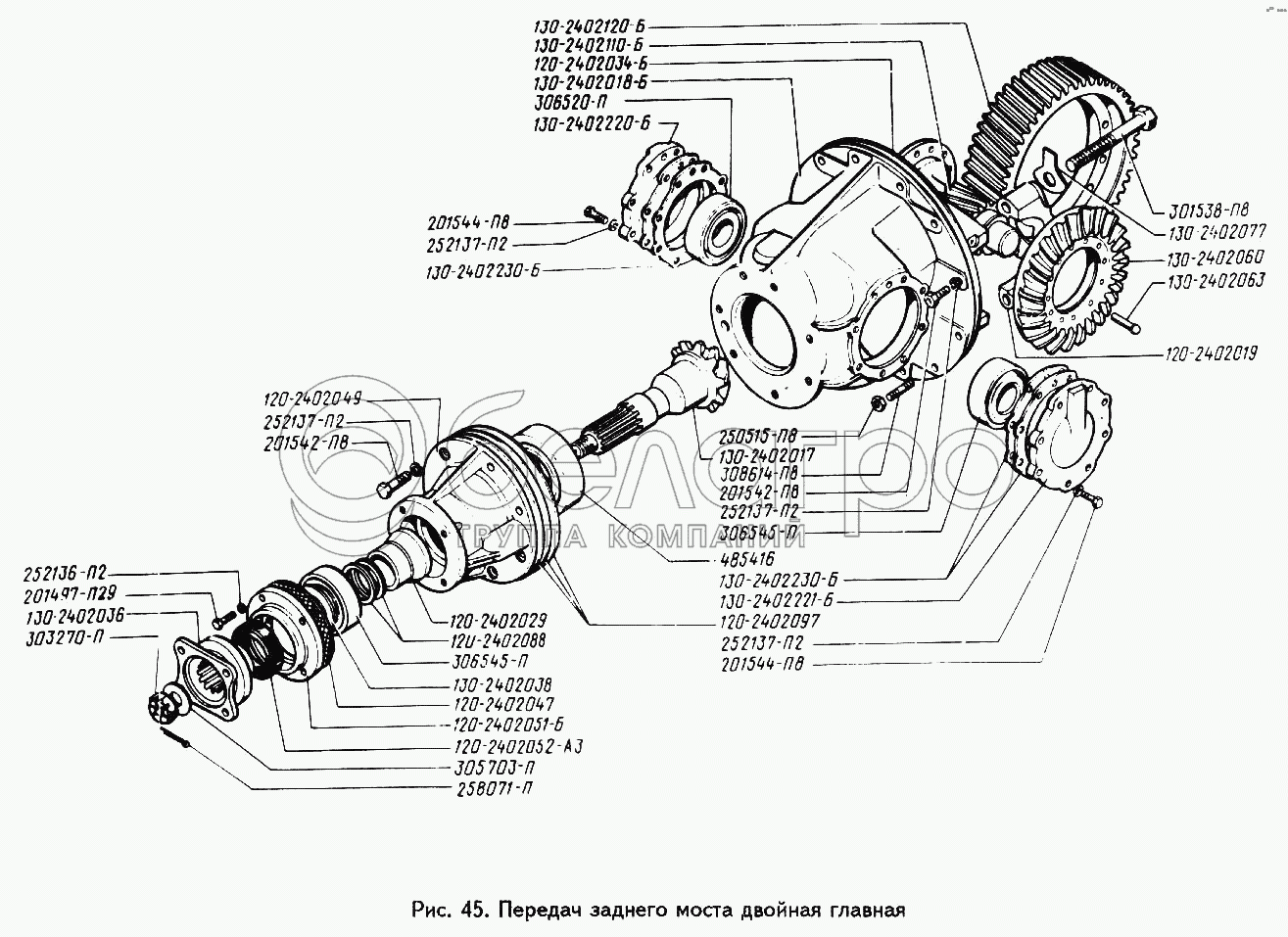 Каталог запасных частей к технике: ЗИЛ-494560. Передача заднего моста двойная главная