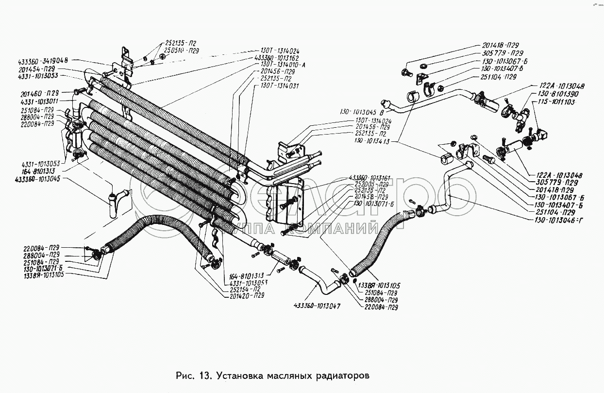 Каталог запасных частей к технике: ЗИЛ-494560. Установка масляных радиаторов