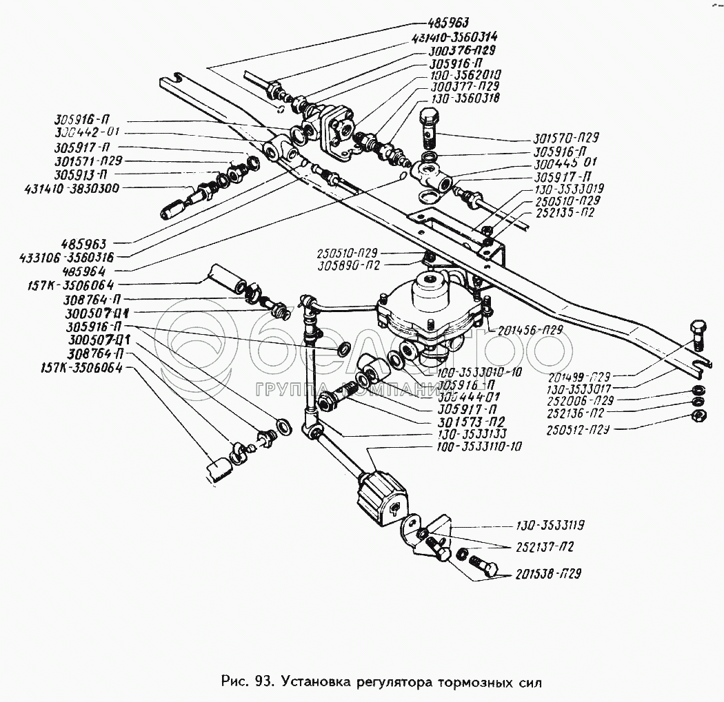 Каталог запасных частей к технике: ЗИЛ-494560. Установка регулятора тормозных сил