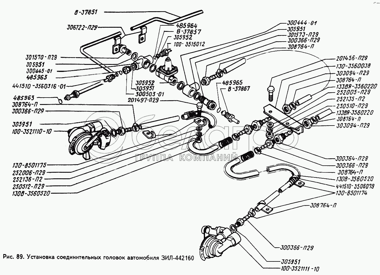 Каталог запасных частей к технике: ЗИЛ-494560. Установка соединительных головок автомобиля ЗИЛ-442160