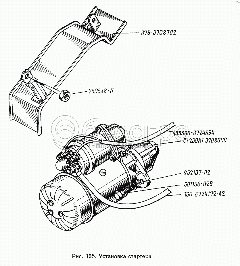 Каталог запасных частей к технике: ЗИЛ-494560. Установка стартера