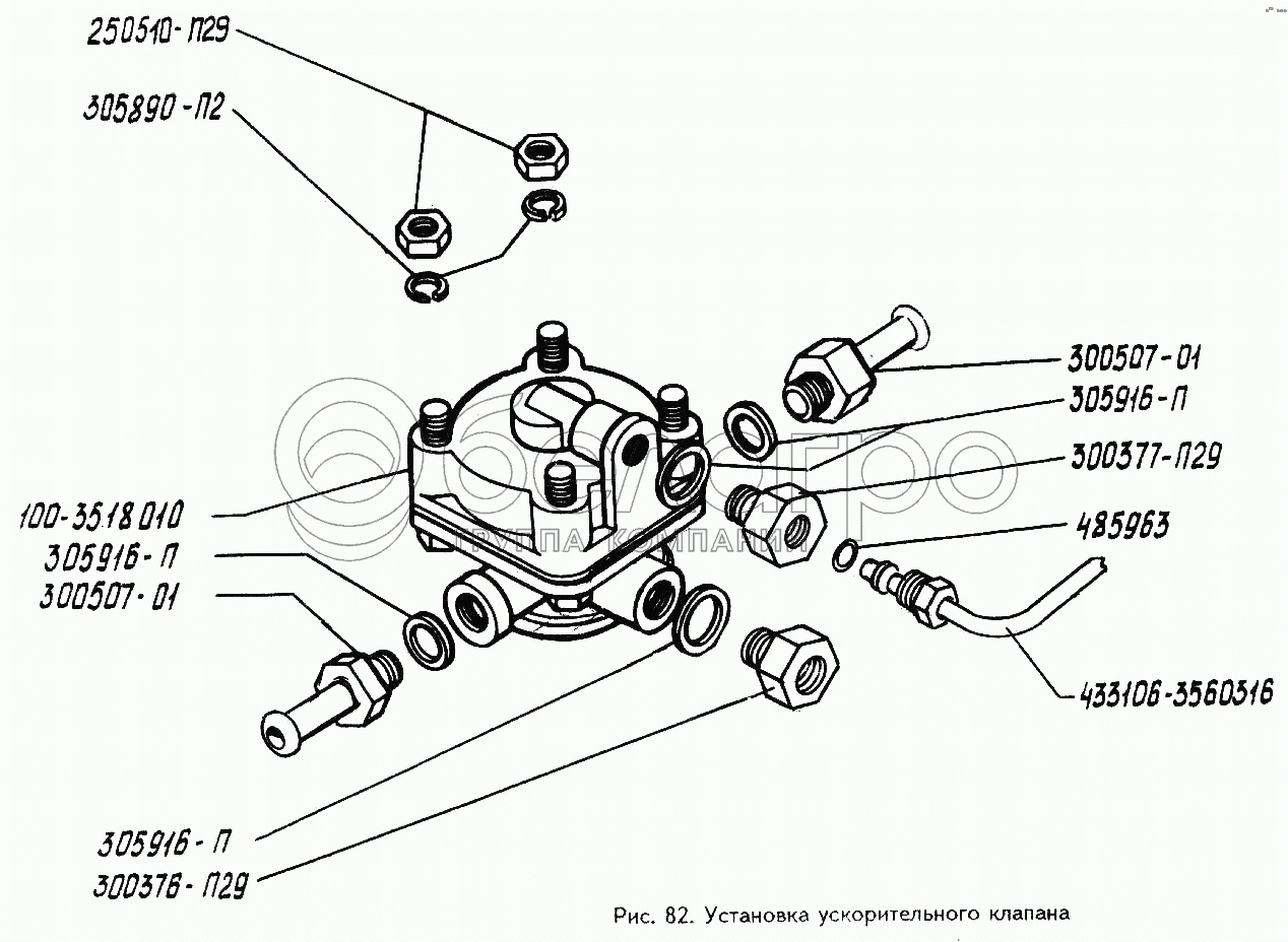 Каталог запасных частей к технике: ЗИЛ-494560. Установка ускорительного клапана