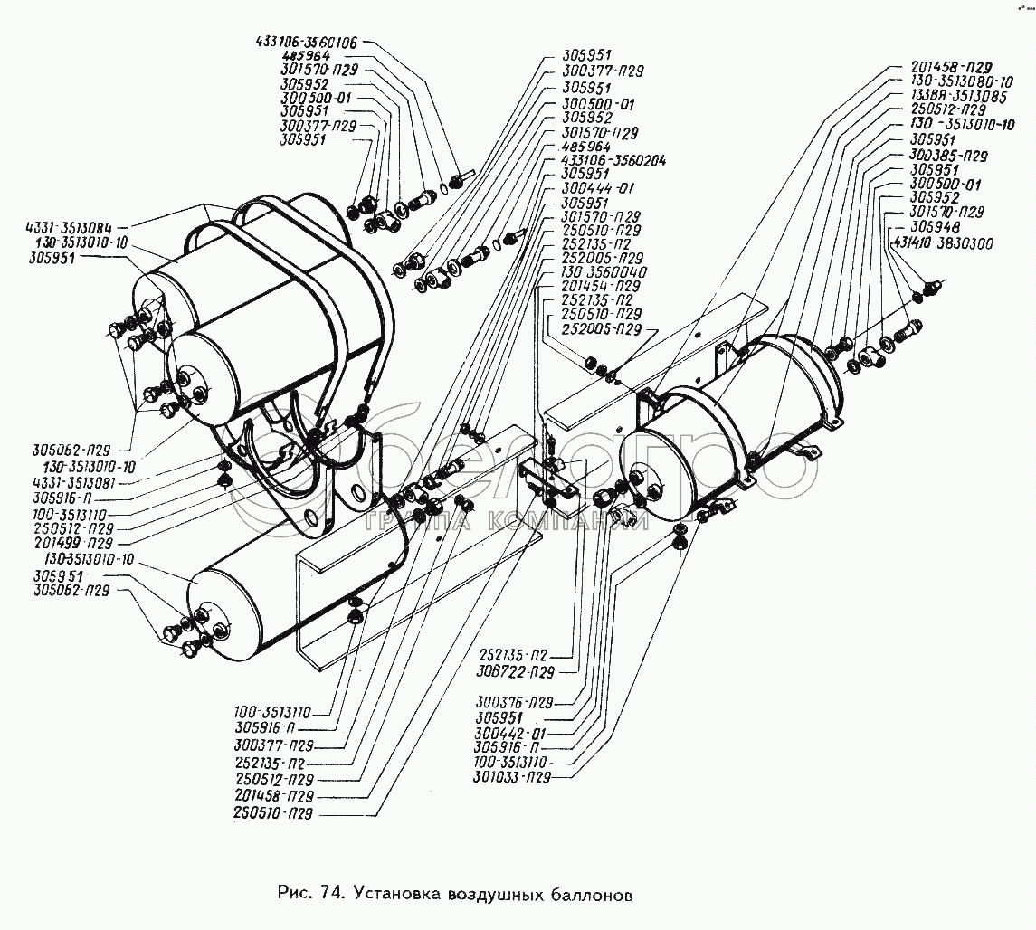 Каталог запасных частей к технике: ЗИЛ-494560. Установка воздушных баллонов