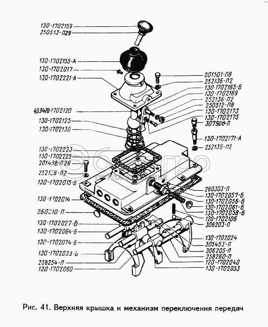 Каталог запасных частей к технике: ЗИЛ-494560. Верхняя крышка и механизм переключения передач