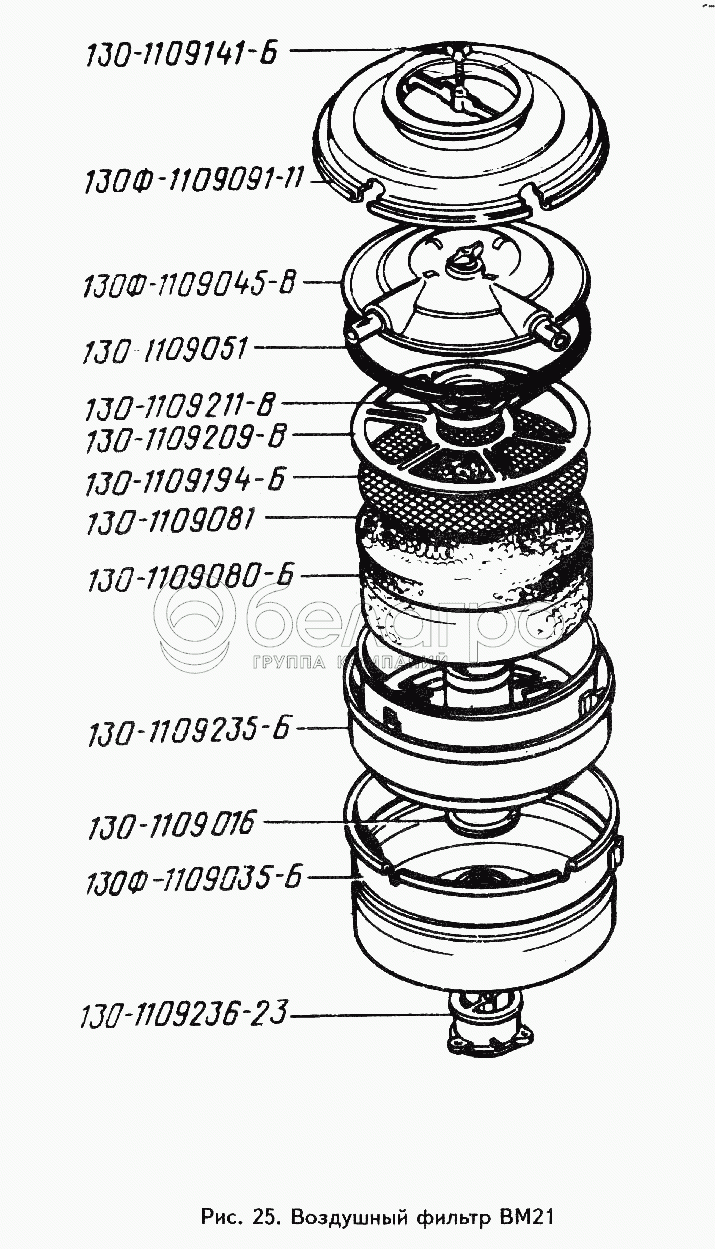 Каталог запасных частей к технике: ЗИЛ-494560. Воздушный фильтр ВМ21