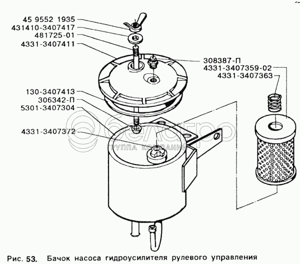 Каталог запасных частей к технике: ЗИЛ-5301. Бачек насоса гидроусилителя рулевого управления